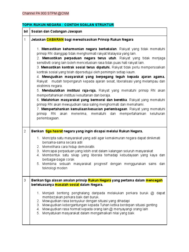 Topik Rukun Negara Koleksi Soalan Struktur Pdf